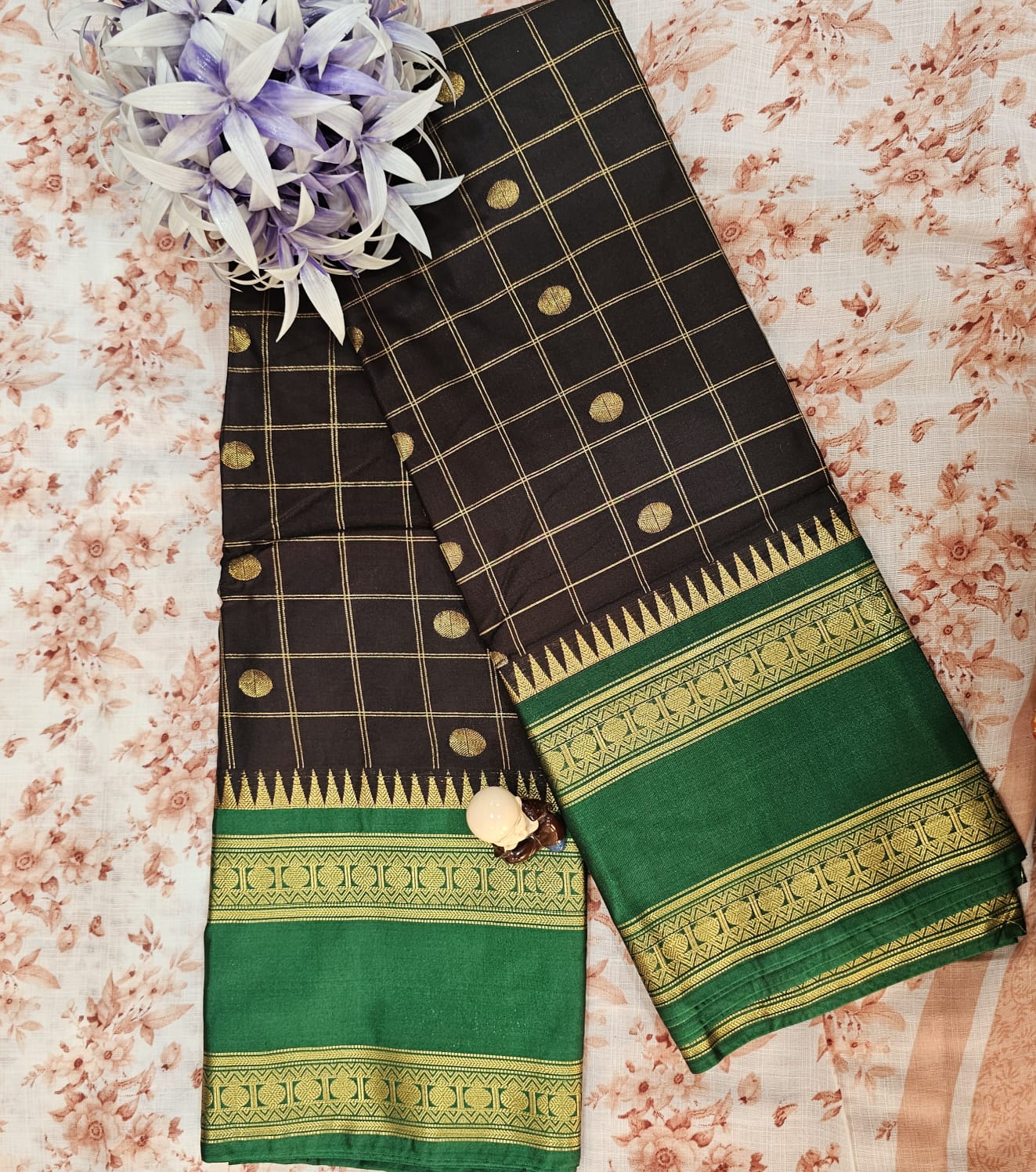 Butta Soft Silk Saree 4 Chocolate brown&Green