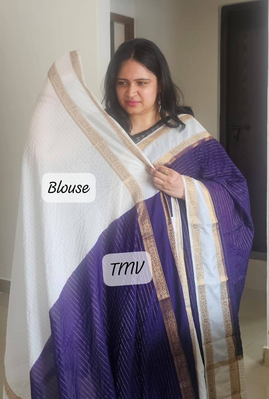 Description- Crepe Saree with bentex border and horizontal stripes design